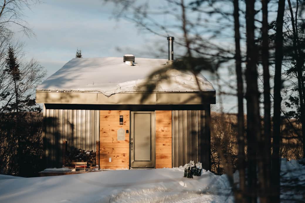 Our mini-chalets are designed for total comfort during your stay. With a closed bedroom and a bed on the mezzanine, with a view of the river, you will have a hard time choosing where to sleep. Our chalets can accommodate up to 4 people, whether with friends, family or for a romantic weekend, these unusual accommodations will be perfect for a change of scenery during your stay. Full kitchen and bathroom, hotel bedding and hotel sheets, you will be in total comfort during your stay.